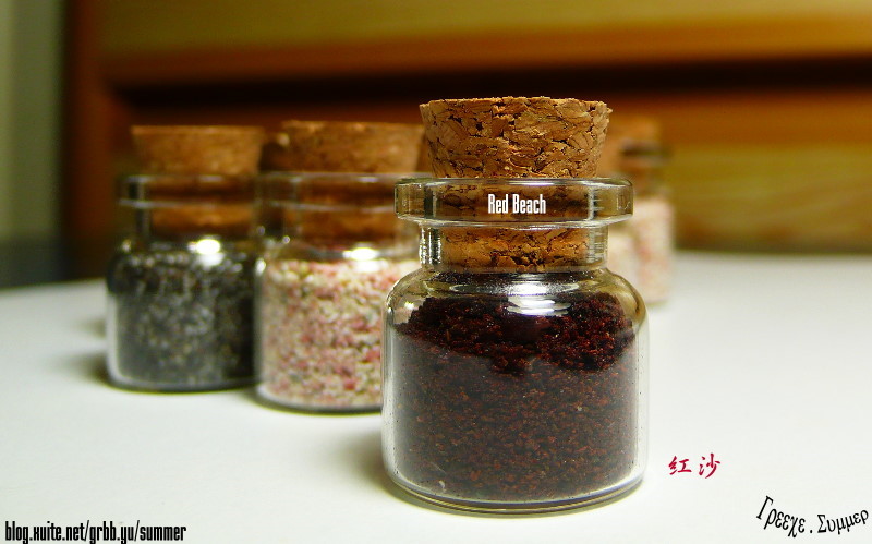 要不是他要我幫他帶回希臘的沙子,我可能只會帶了粉紅沙回來,但這樣,就少了一整組的感覺了~