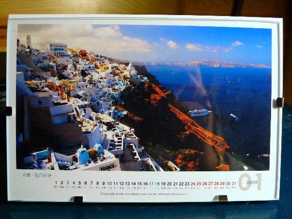 今天同事突然拿了一個台南寄來的包裹給我,我還很狐疑,想說我最近又沒有網購,那來的包裹,而且還是遠從台南,後來拆開來,才發現~哈~是2009年的希臘桌曆!!