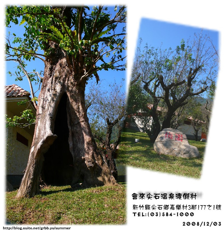 在渡假村的大廳入口旁,有一個神木,還有「梅園」!