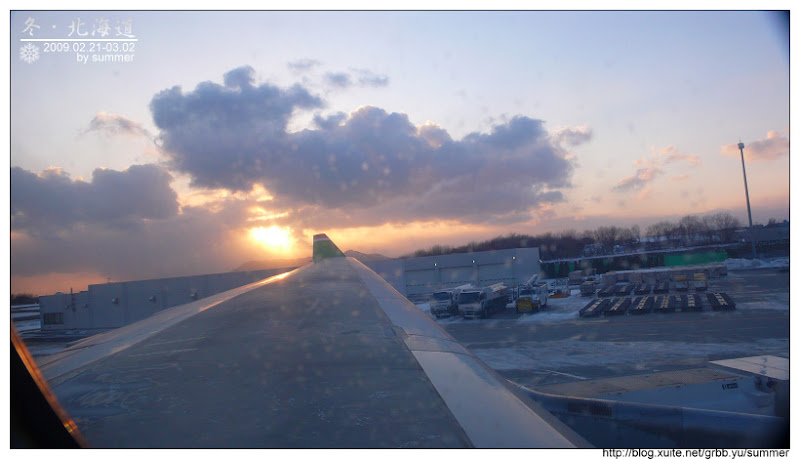 從原本的DELAY三十分鐘、四十五分鐘、一個小時…一直到整整延誤了四個小時,這之間,還因為飛機在上空盤旋過久,油料耗盡,先飛往函館機場去加油,順便清一下飛機外殼上的積雪,休息了一下,才順利飛往千歲機場降落。